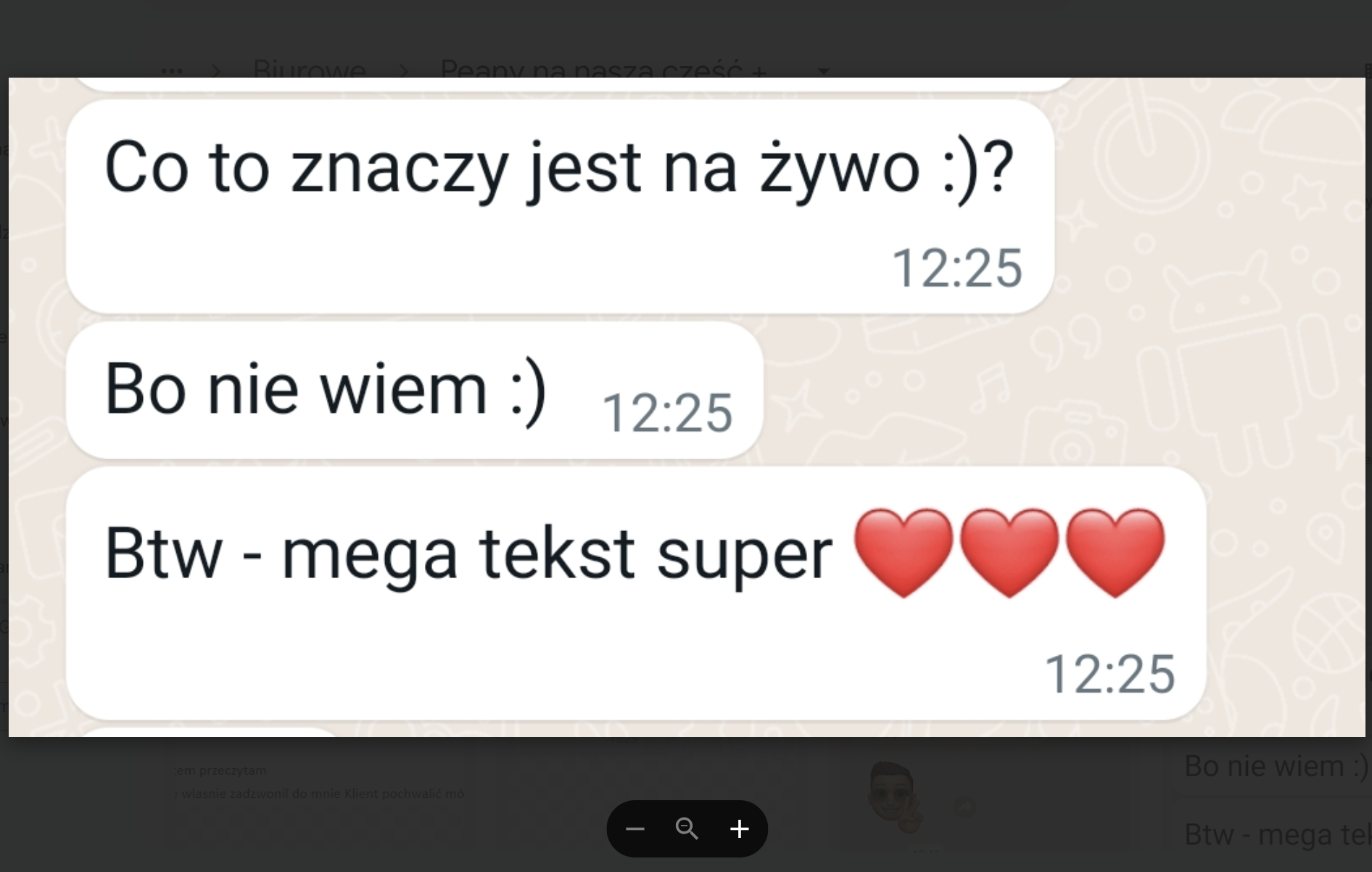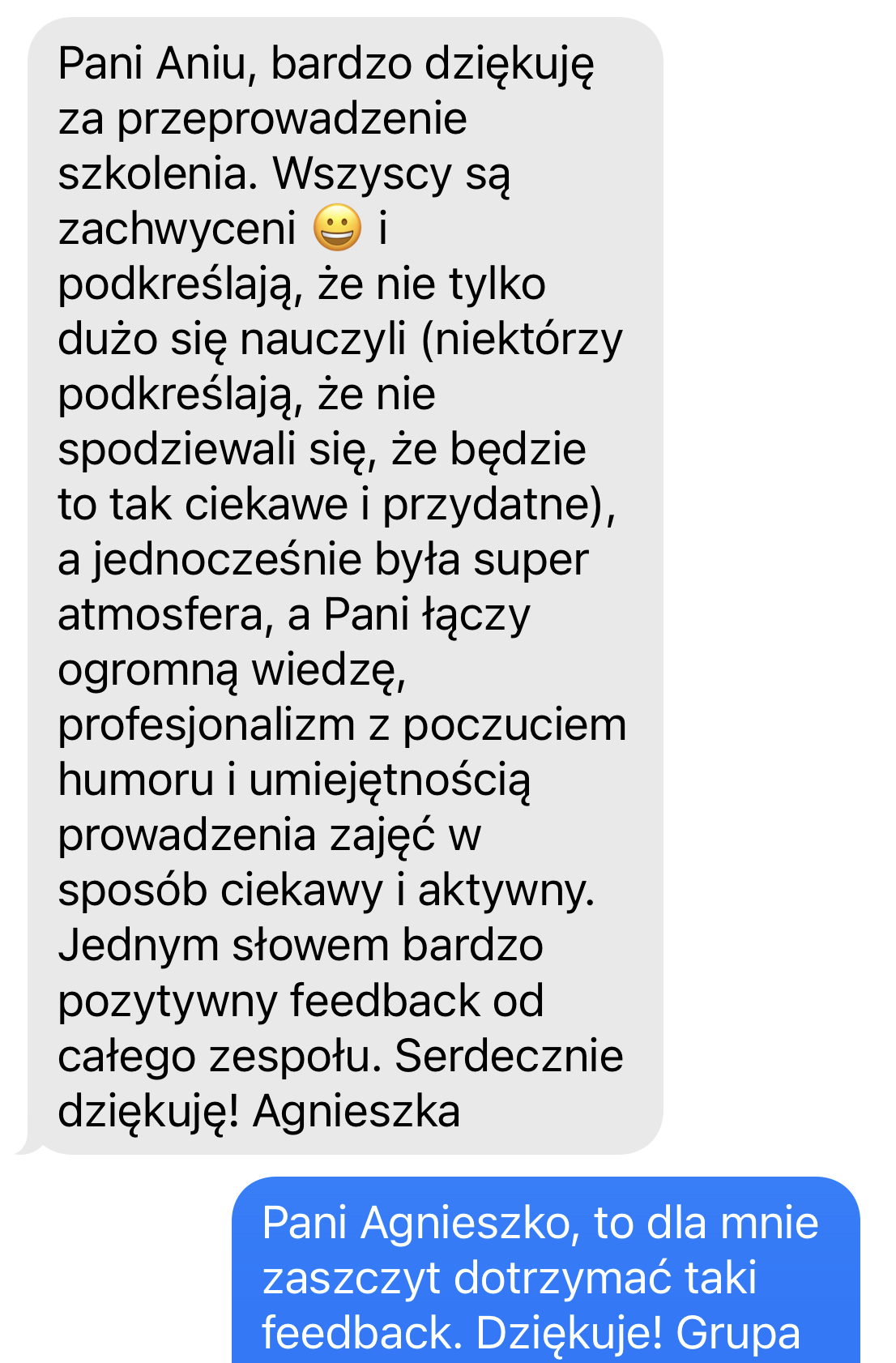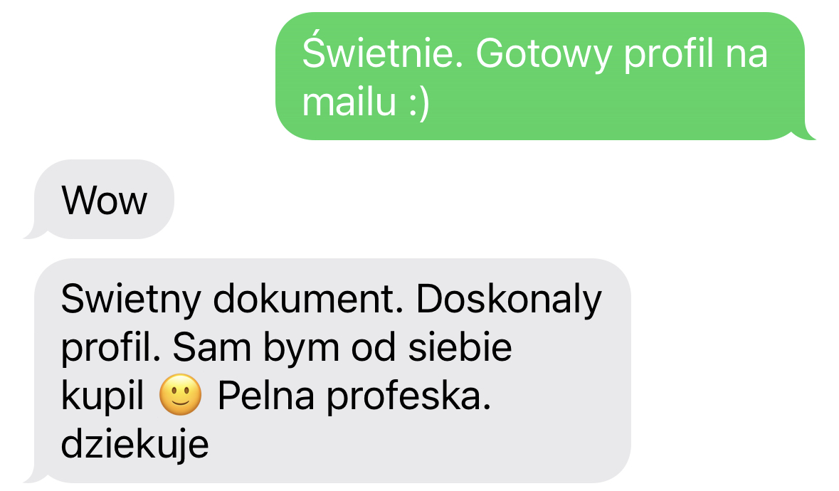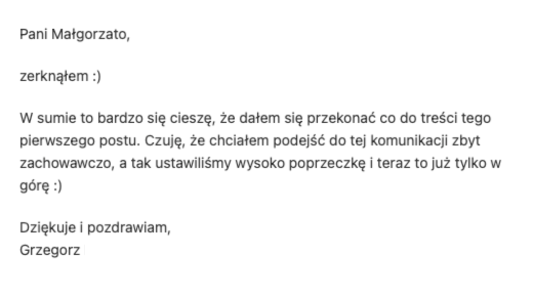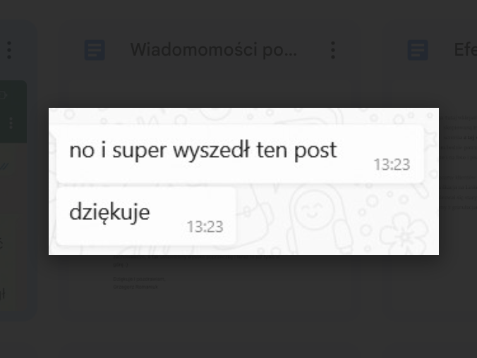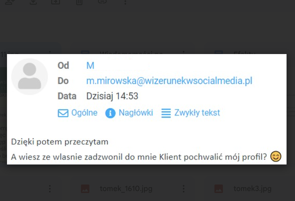 prywatnych wiadomości od klientów z podziękowaniami za strategię i super napisane posty 🙂