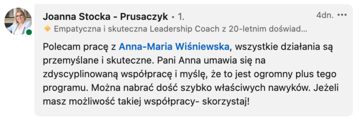 przy regularnej obsłudze nie przeznaczasz na współpracę więcej niż 2-6 h w miesiącu - 50% na kontakt z nami i 50% na pracę własną na LinkedIn
